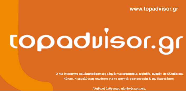 Το TopAdvisor.gr είναι ο κινητός σου φίλος για να αναζητήσεις συμβουλές πριν αποφασίσεις που να πας. Ειλικρινείς απόψεις και σχόλια από καταναλωτές όπως εσύ και εγώ, πραγματικοί χρήστες του TopAdvisor. Έλα και γίνε μέλος της κοινότητας και μοιράσου τις εμπειρίες σου είτε αυτές είναι εξαιρετικές, καλές, μέτριες ή φτωχές.