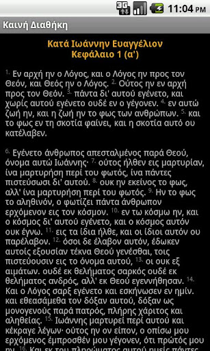 Bible (Βίβλος). Η εφαρμογή περιλαμβάνει το Ευαγγέλιο (Καινή Διαθήκη) στα Ελληνικά. Επιτρέπει την αναζήτηση σε όλο το κείμενο, και την σημείωση κειμένων ως "Αγαπημένα".