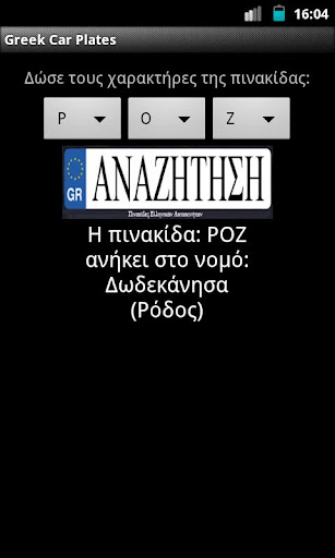 Η εφαρμογή μας λέει απο ποιό τοπικό διαμέρισμα προέρχεται η πινακίδα κυκλοφορίας που θα την ρωτήσουμε.